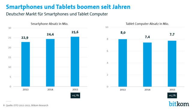 Einen ganz ähnlichen Effekt kann man bei Tablets beobachten. Die Absatzzahlen der Flachcomputer sind nach der Vorstellung des ersten Apple iPad regelrecht explodiert. Im vergangenen Jahr gab es aber bereits erste Anzeichen einer Abkühlung des Wachstums. Auch hier ist der Gerätewechsel bei einer neuen Modellgeneration oft nicht nötig.