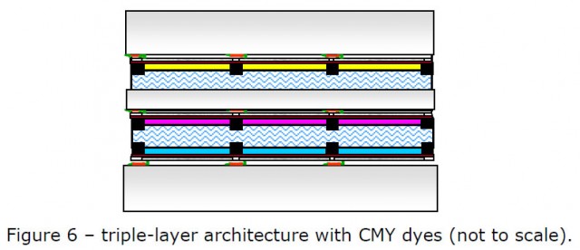 Außerdem lassen sich die Liquavista-Displays auch in Farbe betreiben, entweder mit oder ohne Farbfilter. Die Technik ohne Farbfilter funktioniert durch einen Mehr-Ebenen-Aufbau des Displays, wobei jede Ebene eine andere Farbe darstellen kann. Durch „mischen“ der Ebenen lässt sich jede beliebige Farbe generieren, wobei die Farbpalette zwar nicht ganz an einen üblichen LCD heranreicht, aber laut Datenblatt dennoch weit besser ist als bei aktuell erhältlichen Farb-E-Paper Displays.