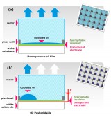 Wird Spannung angelegt, verändert sich die Positionierung des (hier blauen) Ölfilms; Bildquelle: Liquavista