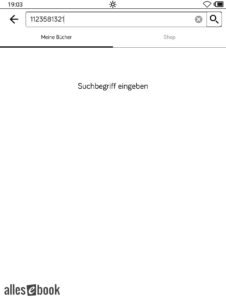 Nun geht’s am Tolino Vision 6 bzw. Epos 3 weiter. Der eBook Reader steckt noch nicht am USB-Kabel. Tippe auf das Such-Symbol in der Benutzeroberfläche des Geräts.