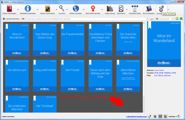 Nach unserem letztwöchigem Hinweis und der dazu gehörigen Anleitung um die eBook-Software Calibre auch automatisch zu aktualisieren, folgt heute ein weiterer Tipp, der die Nutzung des beliebten Programms potentiell ein wenig angenehmer und sympatischer macht: Im nachfolgenden Artikel sehen wir uns an, wie man das Hintergrundbild der Coveransicht ändert.