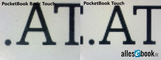 Der etwas geringere Kontrast kommt in erster Linie durch den zuvor schon genannten dunkleren Bildschirmhintergrund zustande. Das soll aber nicht darüber hinwegtäuschen, dass die Ablesbarkeit des Pocketbook Basic Touch weiterhin sehr gut ist – nur eben um eine Nuance dunkler als bei den meisten anderen E-Ink Pearl Geräten. In erster Linie fällt der Helligkeitsunterschied nur im direkten Vergleich und weniger im laufenden Betrieb auf.