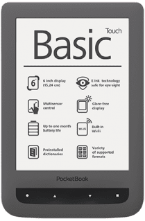 Der PocketBook Basic Touch tritt die Nachfolge des PocketBook Touch 622 an. Das Gerät nutzt einen 6 Zoll E-Ink Pearl Bildschirm mit 800×600 Pixel, einen kapazitiven Touchscreen und verfügt über 4GB internen Speicher der mit einer MicroSD-Karte erweitert werden kann. Der PocketBook Basic Touch verfügt im Gegensatz zum Touch 622 über keinen 3,5 mm Klinkenanschluss.