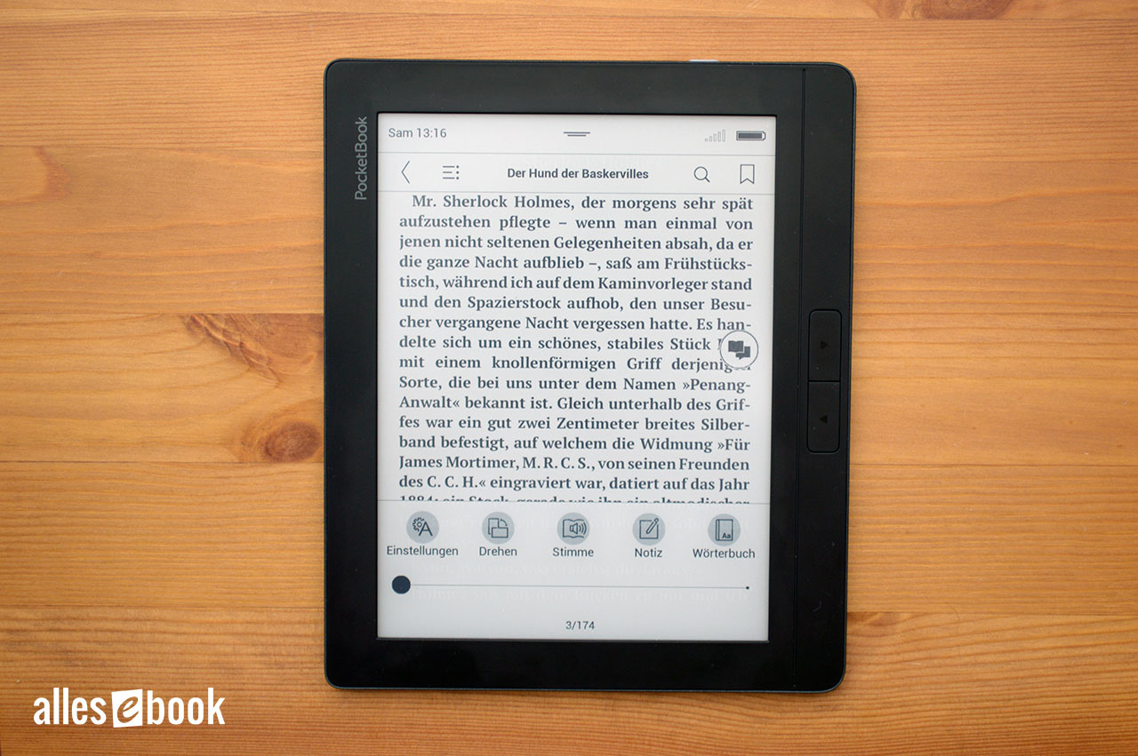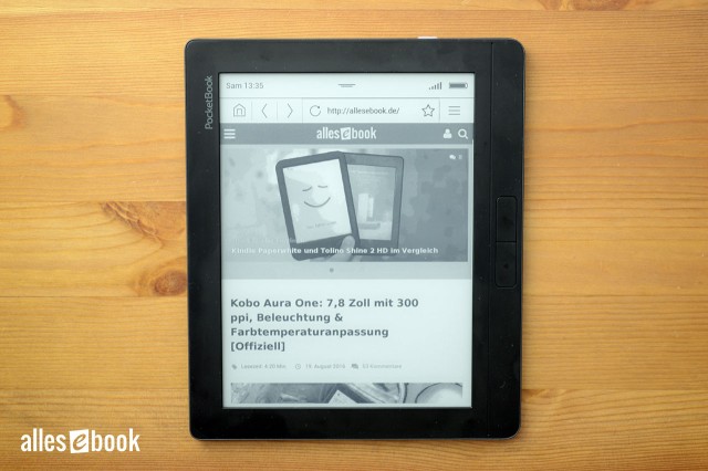 Nicht einhunderprozentig überzeugen kann bedauerlicherweise weiterhin der Bildschirm. Wie bereits im Testbericht ausgeführt, ist die Ablesbarkeit zwar zu jedem Zeitpunkt völlig problemlos möglich, jedoch wirkt die E-Ink-Pearl-Technik im direkten Vergleich mit anderen aktuellen eReadern nicht mehr ganz frisch.