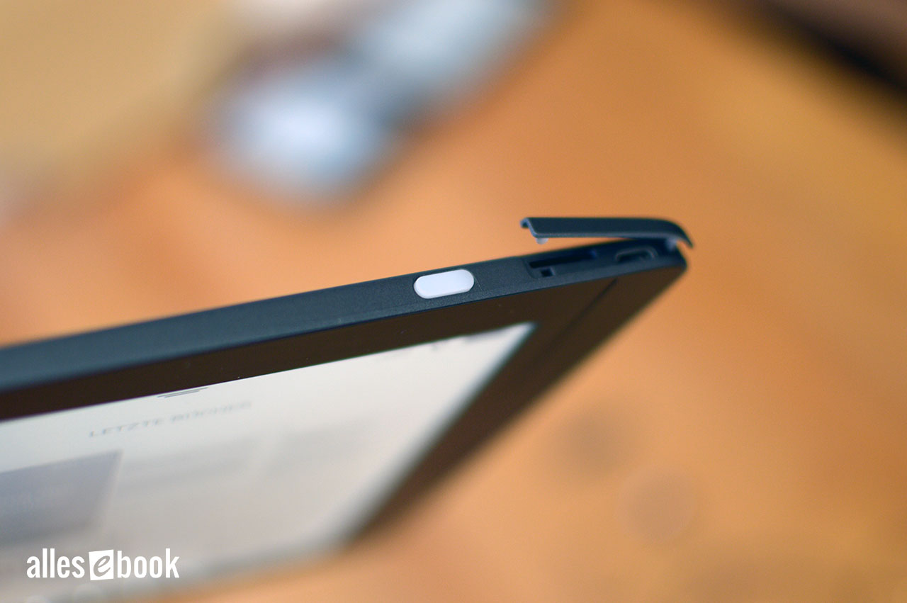 Auch der Powerknopf an der Geräteoberseite wurde sinnvoll geändert: Anstatt wie früher relativ tief versenkt und kaum fühlbar im Gehäuse zu sitzen, ist der neue Knopf nun größer und steht etwas weiter raus. Damit lässt sich dieser leichter ertasten und das Gerät einfacher aktivieren. Direkt im Powerknopf integriert, ist eine hell leuchtende LED, die den Arbeitsstatus des InkPad verrät. Auf Wunsch kann man diese im Einstellungsmenü abschalten.