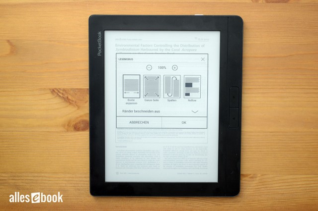 Etwas schade ist jedoch, dass weiterhin keine Möglichkeit zur Kontrastverstärkung bei PDFs vorhanden ist. Durch die Kantenglättung wird kleine Schrift oftmals merklich blasser.