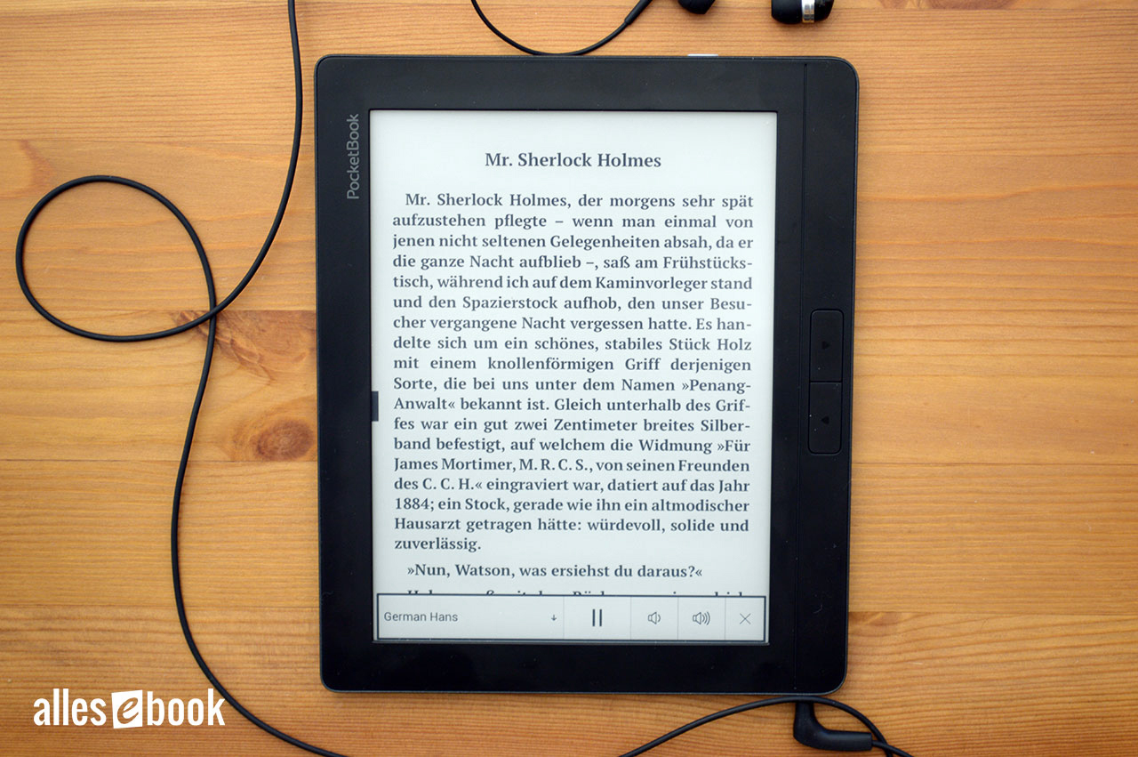 Ein netter Bonus des eReaders ist die Audioausgabe via 3,5 mm Klinkenstecker. Damit kann man sich MP3-Dateien anhören oder auch die (meist) gut funktionierende Text-To-Speech-Funktion nutzen. Diese wandelt den angezeigten eBook-Text mit Hilfe einer computergenerierten Stimme automatisch in Ton um, sodass man sich den Text vorlesen lassen kann. Auch wenn die Qualität dabei selbstverständlich nicht an einen Hörbuchsprecher heranreicht, als Lesehilfe ist die Funktion dennoch ganz brauchbar.