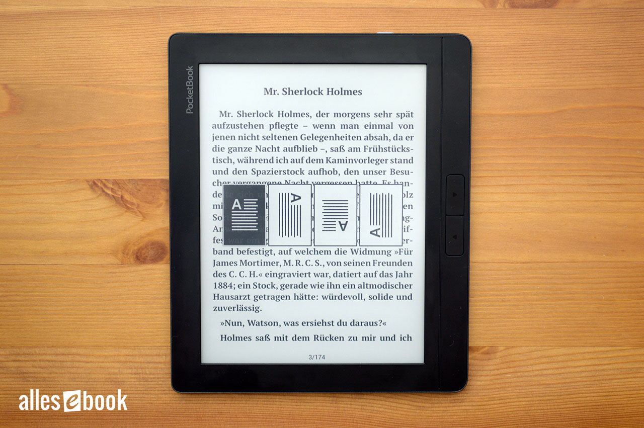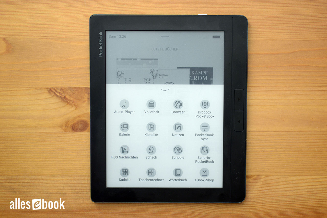 Als Bedienoberfläche kommt das bekannte User Interface zum Einsatz, das man auch vom Vorgänger und den kleineren PocketBook Modellen kennt. Dieses sieht nicht nur modern aus, sondern ist auch intuitiv zu bedienen.