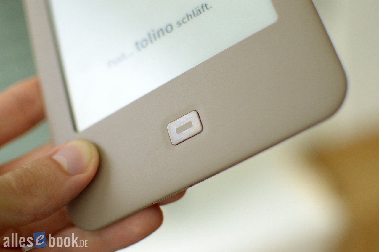 Neben diesen beiden größeren Änderungen, wurden auch die Logos und Knöpfe geringfügig angepasst. Die vorder- und rückseitigen Tolino-Schriftzüge sind nun nicht mehr aufgedruckt, sondern ins Plastik eingelassen und glänzen unauffällig. Während der Home-Button unter dem Bildschirm visuell und vom Druckpunkt weitestgehend unverändert bleibt, hat man den Einschaltknopf zu einem normalen Druckknopf gewandelt (anstatt des alten Schiebers). Dessen Druckpunkt ist leider etwas unklar und hart ausgefallen.
