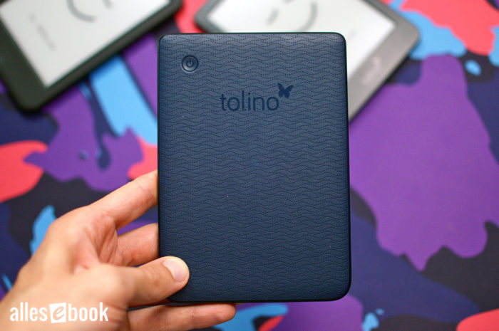 Die mit kleinen Pünktchen perforierte Rückseite folgt dem bekannten Tolino-Design und fasst sich für mein Empfinden etwas rauer und dadurch besser an als die ebenfalls perforierte, aber dennoch glatte Rückseite des Shine 3. Allerdings fangen sich in diesen kleinen Vertiefungen wieder Staub und Krümel, die sich auch nicht immer ganz einfach entfernen lassen, weshalb ich weiterhin kein Freund dieser Designentscheidung bin.