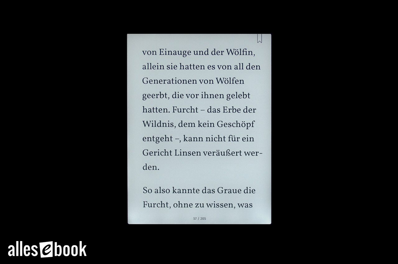 Im direkten Vergleich zum Vorgänger wirkt der Tolino Shine 4 damit wesentlich kontrastreicher. Dadurch ist die Ablesbarkeit mit aktivierter Beleuchtung jedenfalls komfortabler als beim ohnehin schon sehr guten Shine 3.