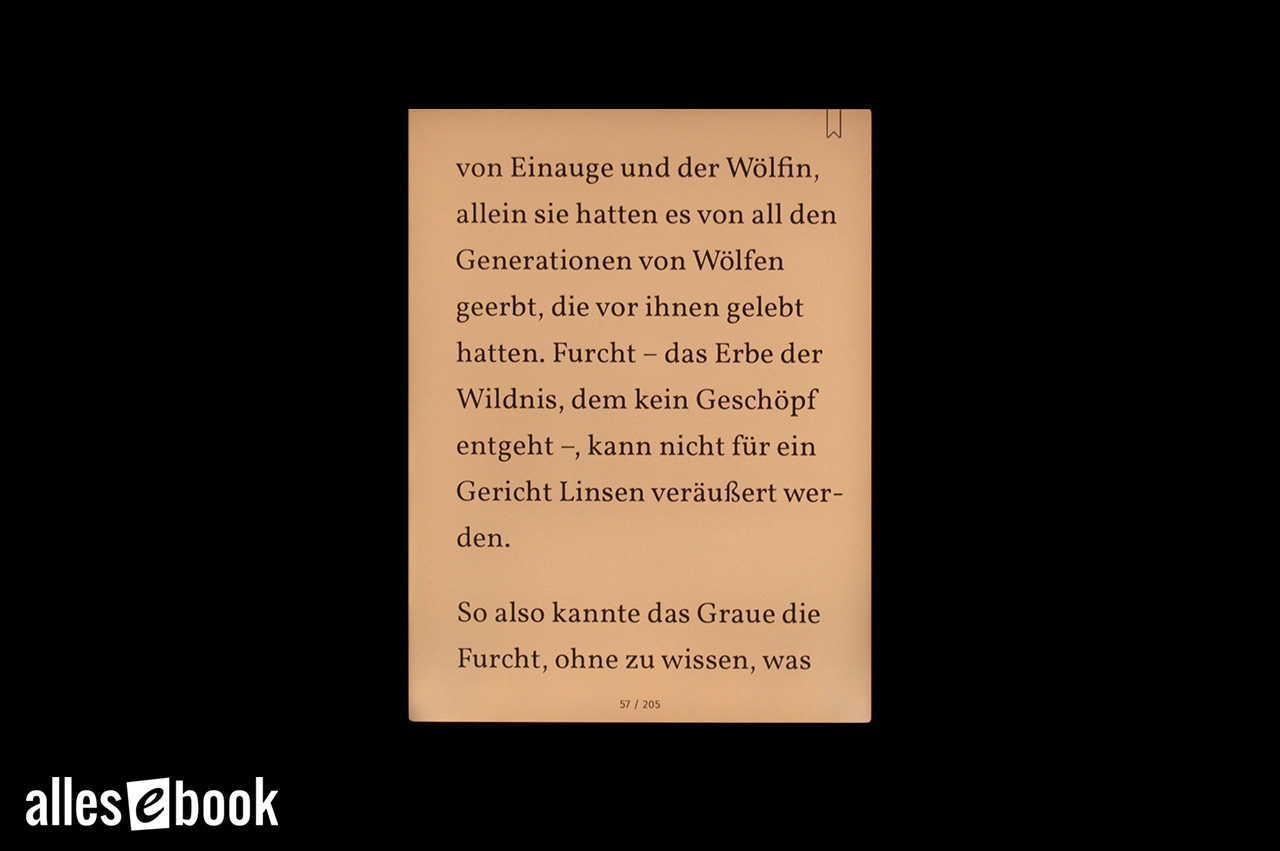 Wenn man die Option nutzt, wird aber schnell klar, wieso sich ein solcher Nachtmodus auf eReadern bisher kaum durchsetzten konnte: Der ansonsten relativ unauffällige Ghosting-Effekt ist mit schwarzem Seitenhintergrund deutlich sichtbar.
