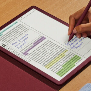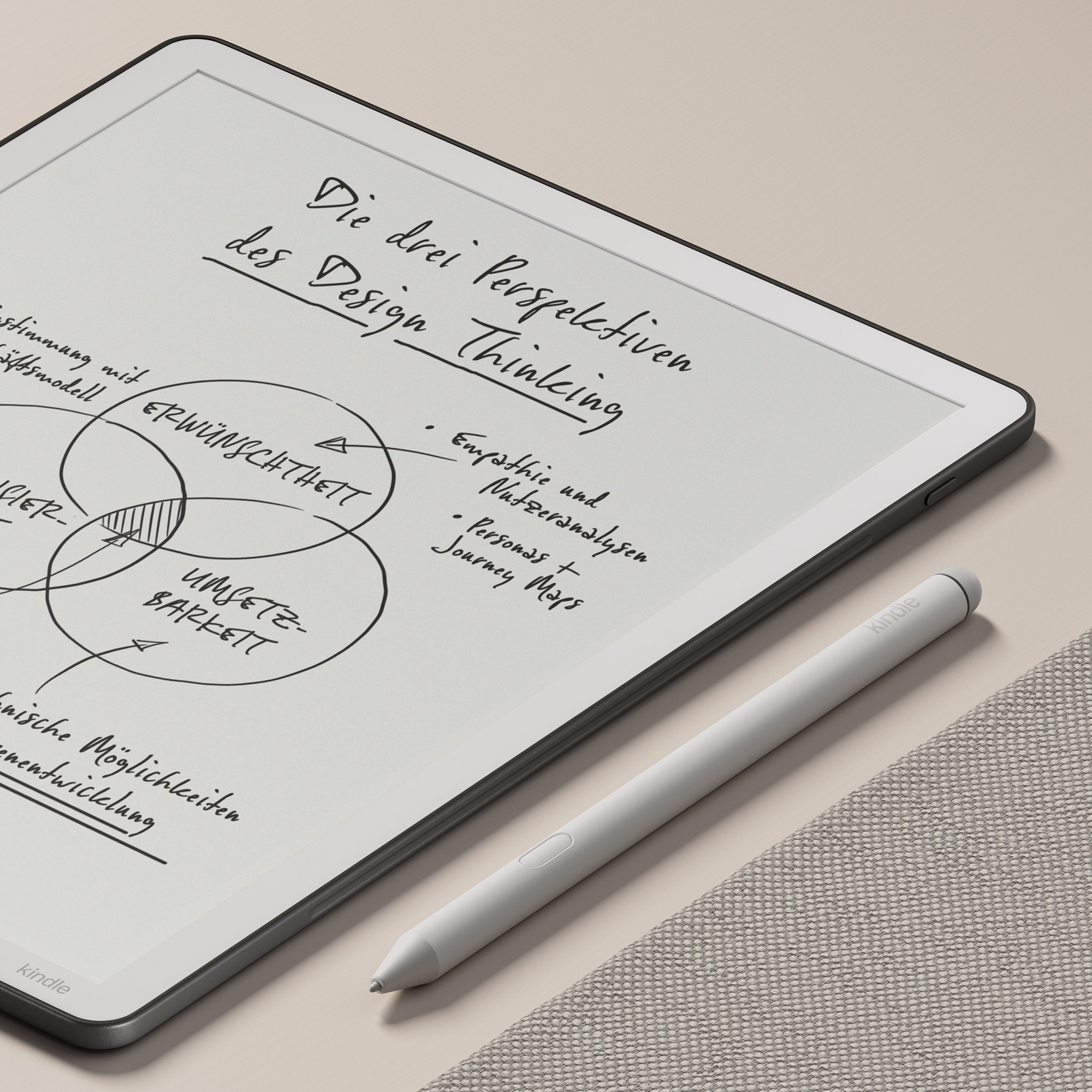 Auch die Displaytechnik wurde überarbeitet: Amazon spricht von einer verringerten Distanz zwischen Glas und E-Ink-Layer sowie einer neu strukturierten Oberfläche mit höherem Schreibwiderstand. Das soll für ein direkteres, papierähnlicheres Schreibgefühl sorgen.