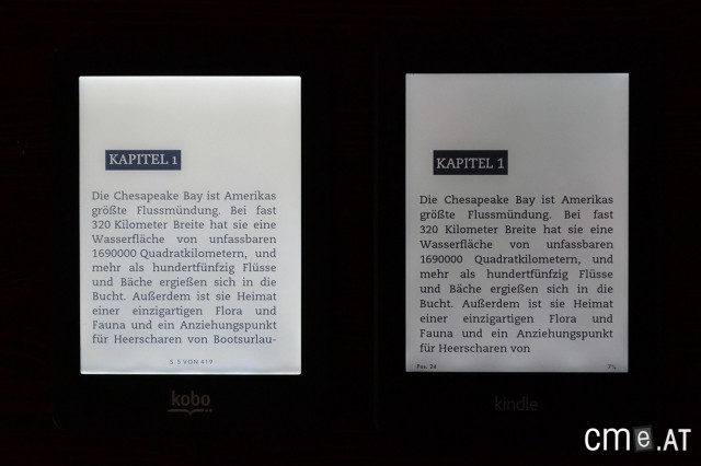 Letztendlich holt sich der Kobo Glo diesen Punkt ganz klar. Der Unterschied ist zwar keineswegs so groß wie damals beim Vergleich zum Sony PRS-T2, aber trotzdem muss sich der Glo zu keinem Zeitpunkt fürchten.