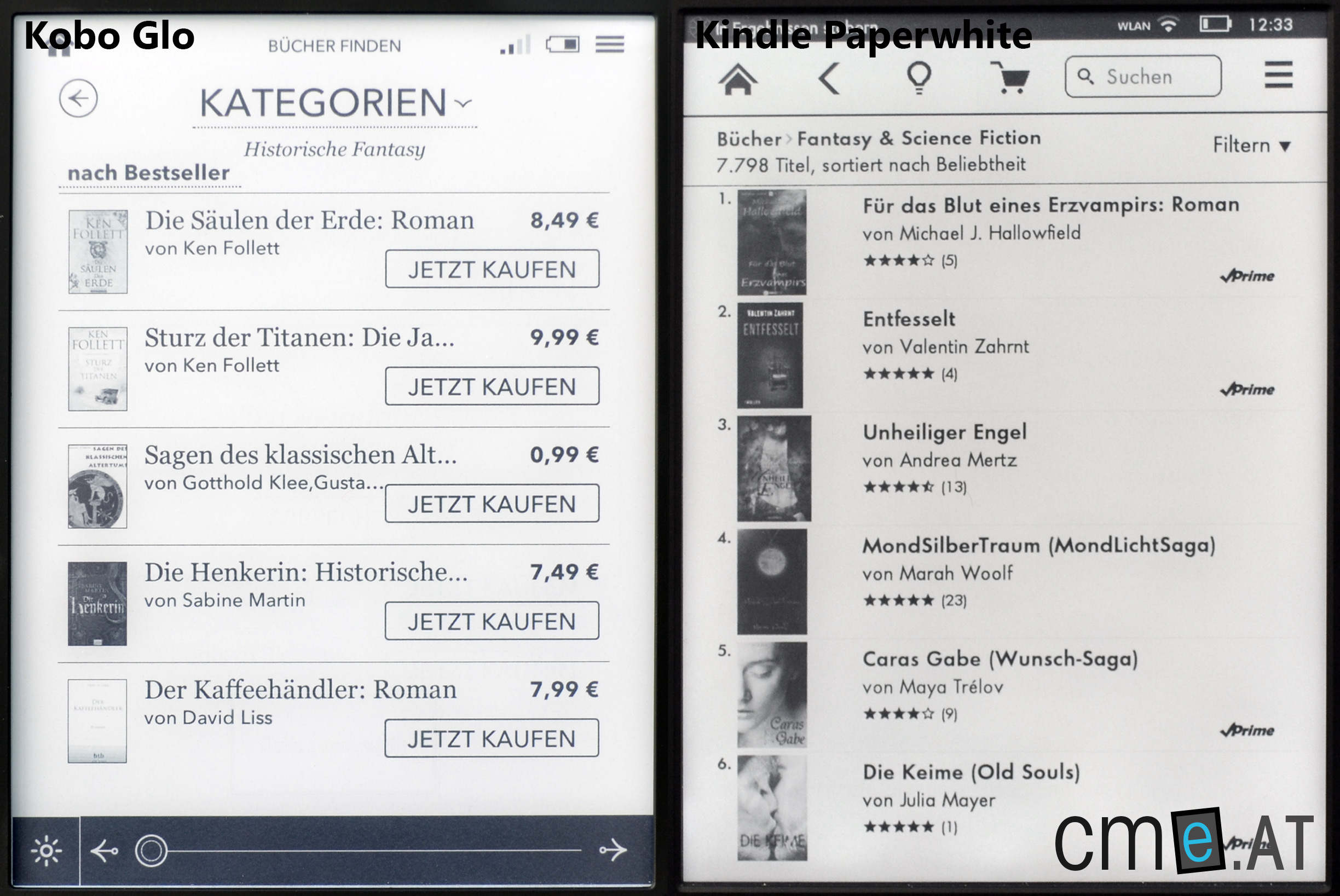 Auch hier können sich sowohl Kobo Glo, als auch Kindle Paperwhite einen Punkt holen.