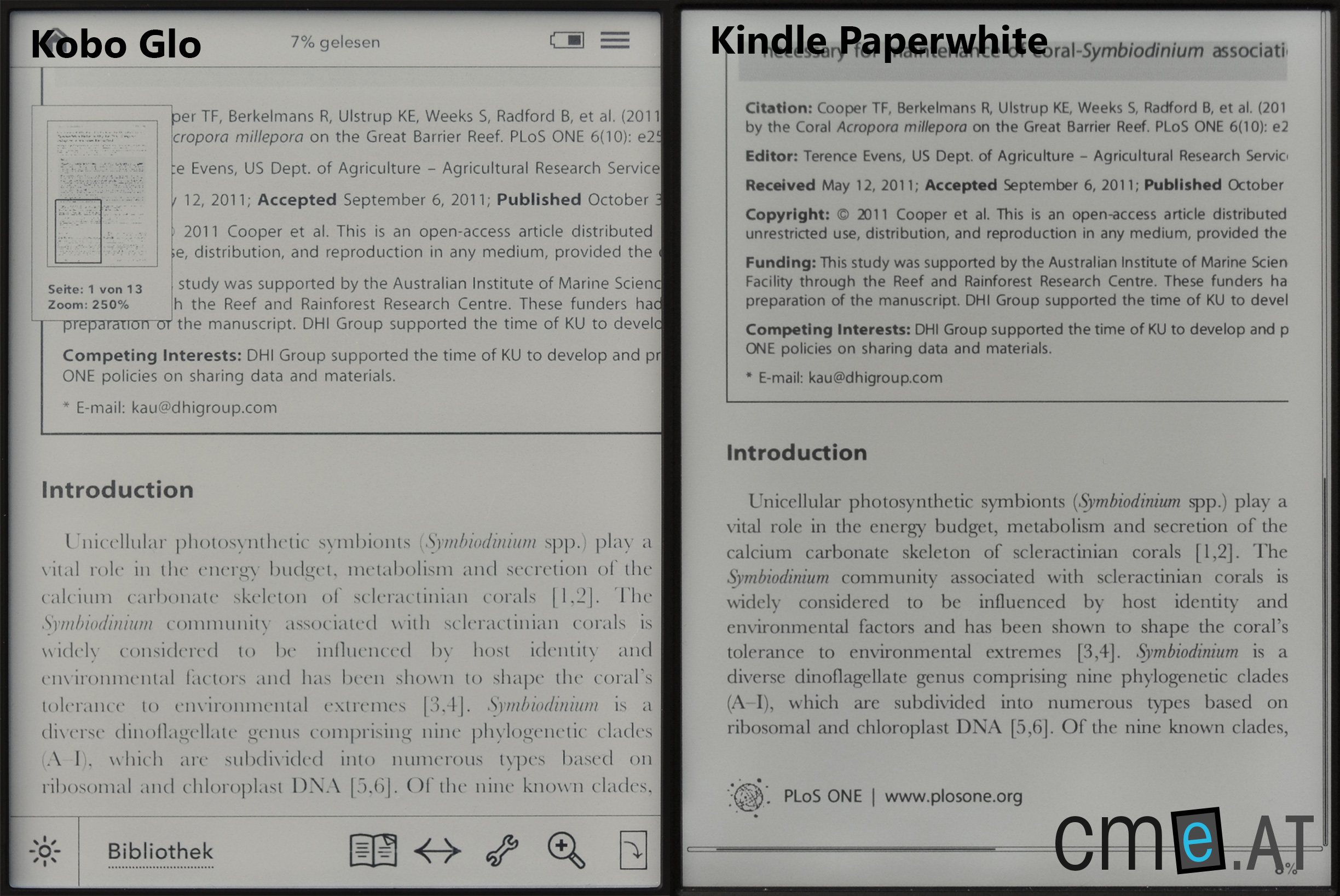 Dank Kontrastverbesserung kann man PDF-Dateien am Kindle Paperwhite (rechts) oft besser lesen als am Kobo Glo (links)