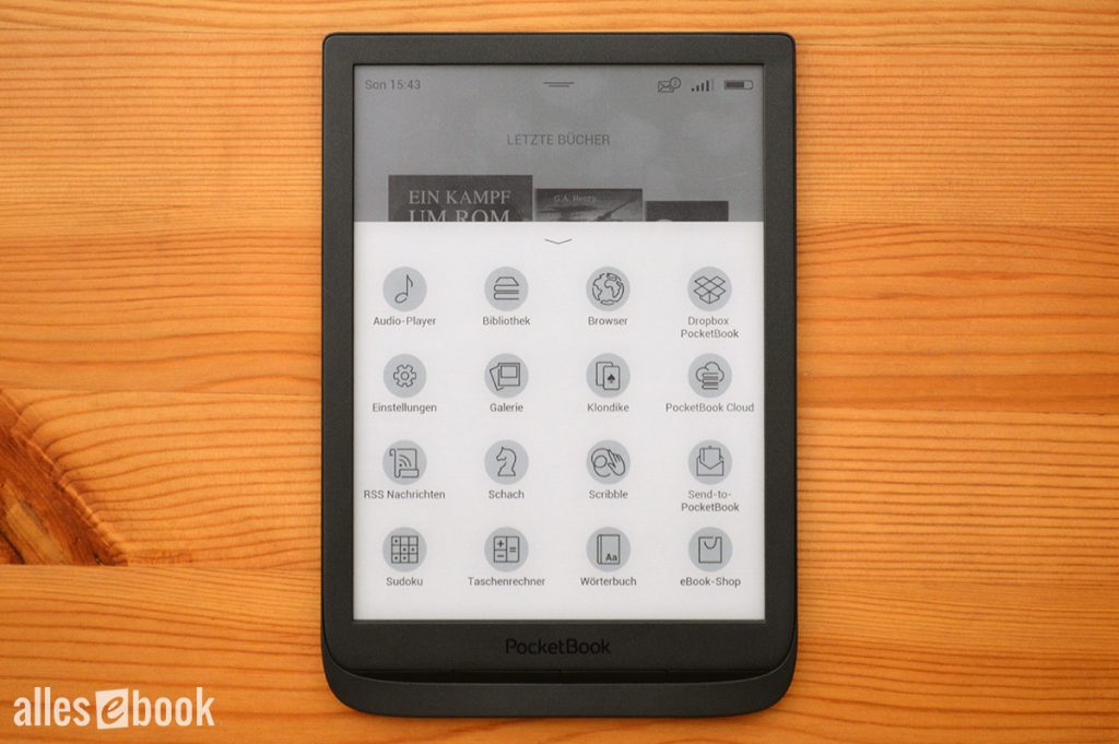 Ebenso wie beim kleinen Bruder Touch Lux 4 wurde zwar die Gehäuseoptik überarbeitet, die Benutzeroberfläche bleibt aber wie gewohnt. Diese präsentiert sich somit weiterhin im modernen, luftigen Look, den man bereits seit dem PocketBook Ultra kennt.