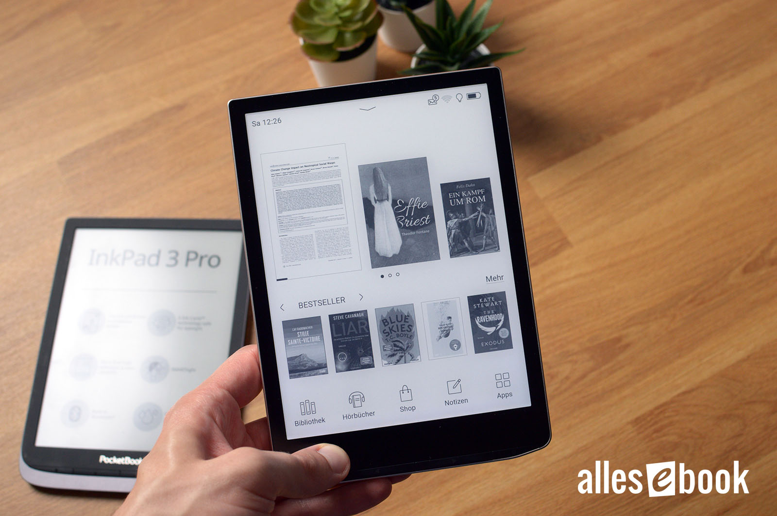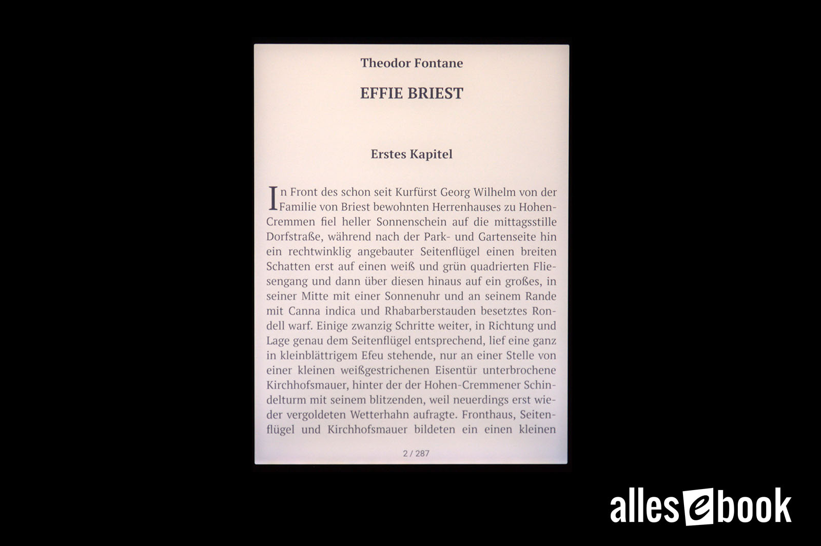 Als derzeit kontrastreichstes Modell in dem Größensegment gilt der Tolino Epos 3 mit der gleichen Displaytechnologie. Im direkten Vergleich kann das PocketBook InkPad 4 zwar nicht ganz mithalten, liegt aber nur knapp dahinter.
