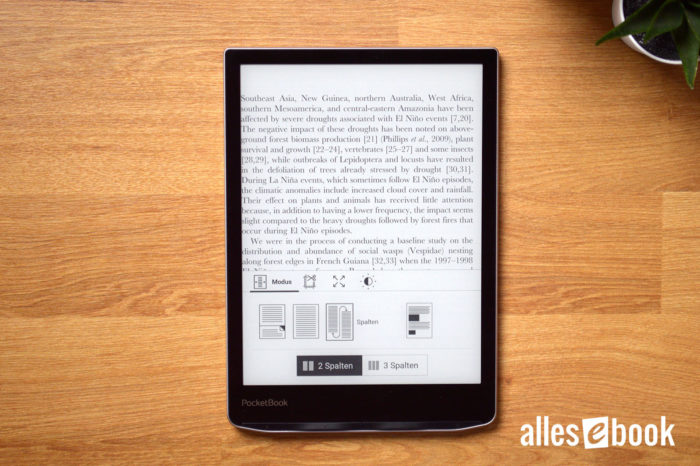 Neben der umfangreichsten Bibliotheksfunktion bietet die PocketBook-Software auch weiterhin die beste PDF-Anzeige unter den Mainstream-Anbietern (Amazon, Tolino, Kobo). Obwohl das 7,8-Zoll-Display nicht für das Lesen großer DIN A4-Dokumente prädestiniert ist, können die zahlreichen nützlichen Softwarefunktionen und das scharfe 300 ppi-Display diesen Umstand gut ausgleichen.