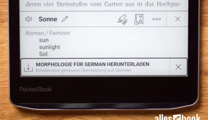 Kurzgesagt: PocketBook bietet mit dieser eindrucksvoll langen Liste an kostenlos verfügbaren Wörterbüchern mit großem Abstand die international wohl am besten nutzbare Wörterbuchfunktion am Markt.