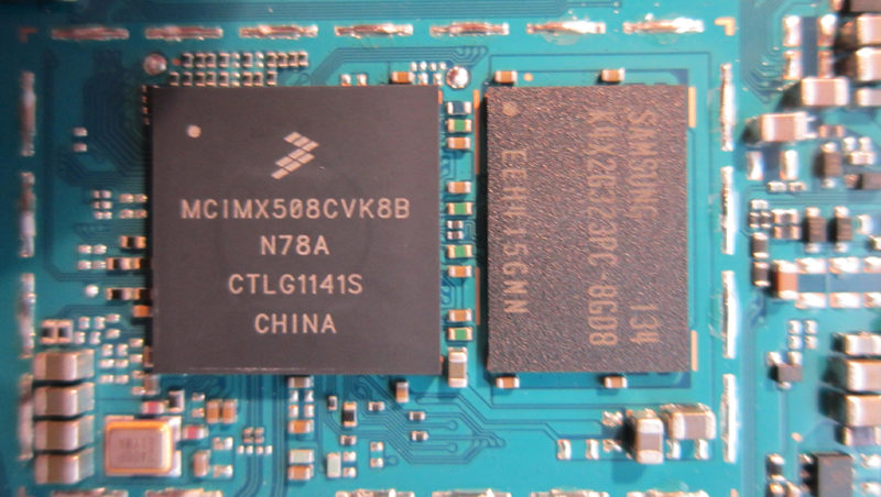 Grund genug nun einen genaueren Blick hinter die Kulissen zu werfen. Die nachfolgenden Bilder stammen von unserem Homepage-Besucher El Oso (nochmals vielen Dank dafür!) und zeigen das Mainboard des PRS-T1, inkl. verschiedener Anbauteile. Als Hauptprozessor kommt ein Freescale 800 Mhz SoaC (MCIMX508CVK8B) zum Einsatz und der Arbeitsspeicher stammt von Samsung (K4X2G323PC-8GD8). Der Akku hat eine Kapazität von 1000 mAh und ist mit dem Mainboard verlötet.