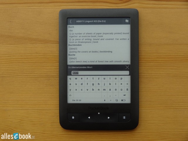 Außerdem würden wir uns wünschen, dass die Wörterbuchfunktion einfacher zugänglich gemacht wird. Das war schon bei unserem ersten PocketBook Touch 622 Test vor über einem Jahr ein Kritikpunkt. Das lange Antippen auf ein Wort um das Wörterbuch zu öffnen, wie man das von anderen Geräten kennt, ist nicht unbedingt viel schneller als die Zwei-Klick-Lösung des PocketBook Touch Lux, aber in jedem Fall komfortabler und intuitiver.