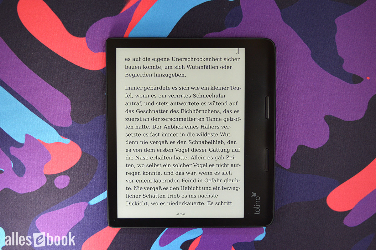 E-Ink Carta 1200 wiederum entstammt der aktuell modernsten E-Ink-Technik. Die aktuelle Namensgebung der E-Ink Displays ist zwar ein wenig undurchsichtig, in der Praxis kann die neue Technik aber auch im Tolino Epos 3 halten was sie verspricht: Mehr Kontrast.