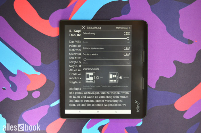 Selbstverständlich besitzt der Tolino Epos 3 auch eine blaulichtreduzierte Beleuchtung.