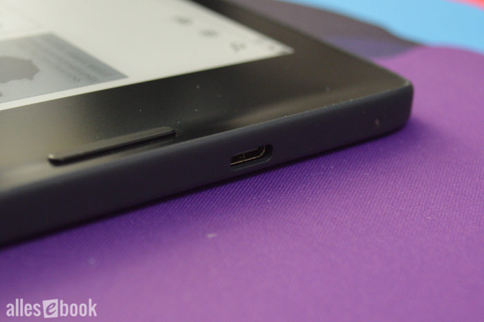 Der Power-Knopf befindet sich nun – erfreulicherweise – auf der Rückseite des Geräts. Beim Epos 2 sitzt der Power-Knopf seitlich auf der Griffleiste, was für mein Empfinden ergonomisch höchst fragwürdig war. Denn je nachdem wie man den eReader hält, fährt man da schon man mit der Hand drüber und spürt den Knopf. Beim Epos 3 gibt’s das Problem nicht mehr.