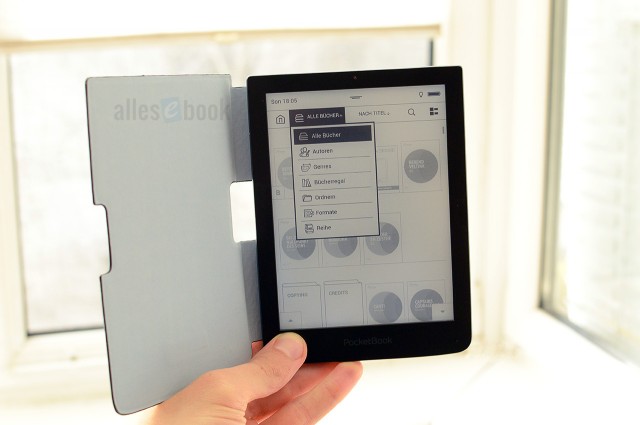 Aktuell bietet nur PocketBook beide Optionen. Mit der neuen Firmware 5.x wurde nach langer Zeit und oftmals geäußertem Kundenwunsch (böse Zungen behaupten, die Negativkritik am Ultra war ursächlich dafür verantwortlich) endlich die multiple Calibre-Schlagwortunterstützung integriert – zusätzlich zur bereits vorhandenen Verzeichnisstrukturoption. Zusammen mit den anderen Filter- und Sortierfunktionen bietet PocketBook die momentan umfangreichste Bibliothekverwaltung am Markt. So (ähnlich) sollte das bei allen Anbietern aussehen.