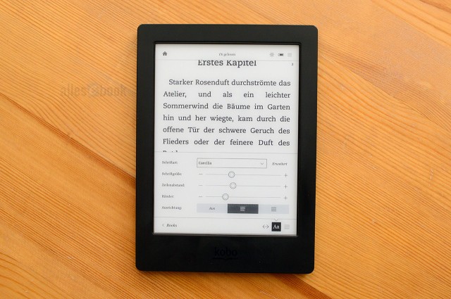 Besonders die eBook Reader von Kobo machen sich hier positiv bemerkbar, denn deren Textanpassung funktioniert beinahe stufenlos, was im Grunde alle erdenklichen Anpassungen erlaubt. Zusätzlich kann man außerdem auch die Schriftdicke (bei unterstützten Fonts) stufenweise (!) anpassen.