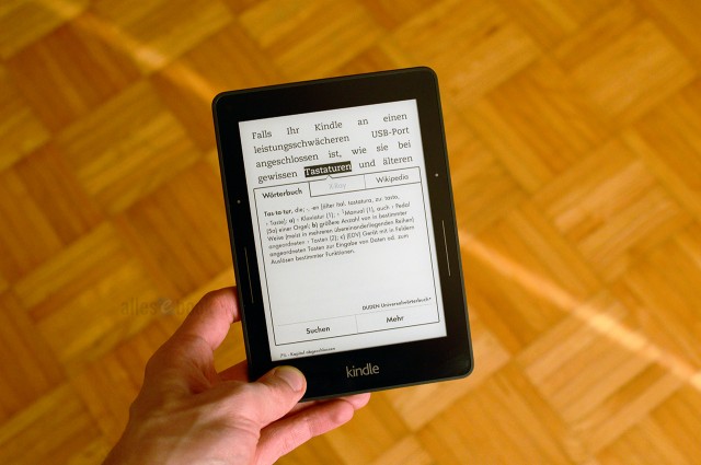 Bei Sony kann man sie allerdings nicht erweitern und bei Amazon gibt’s nur eine Hand voll mitgelieferter Wörterbücher, wobei die Zusatzangebote in Hinblick auf die Qualität nicht am gleichen hohen Niveau sind.